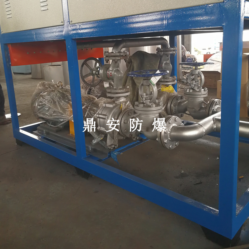 導熱油加熱機組(又稱電加熱導熱油爐)由防爆電加熱器、有機熱載體爐、換熱器(可配置)、控制柜,熱油泵、膨脹槽等組成一個整體的系統(tǒng),用戶只需要接入電源、介質(zhì)的進出口管道法蘭及一些電氣接口即可使用。具有完備的運行控制和安全監(jiān)測裝置,能實行自動化控制。能在較低的運行壓力下獲得較高的工作溫度。
