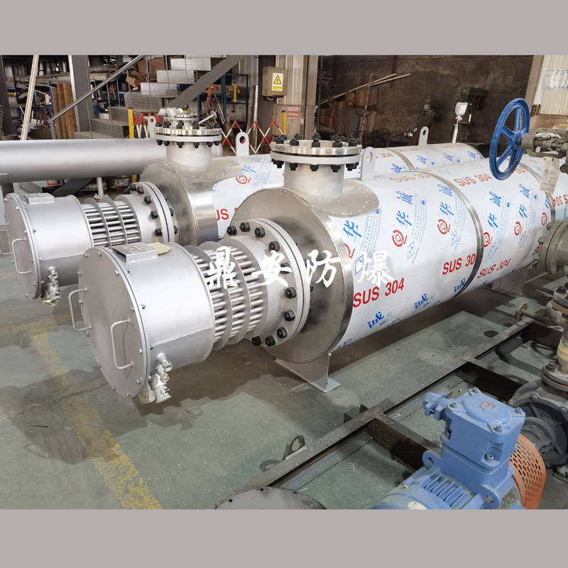 防爆加熱器一般用于存在爆炸可能的危險(xiǎn)場(chǎng)合,由于周圍環(huán)境中存在易燃易爆的各種油、氣、粉塵等,一旦接觸到電火花就會(huì)引起爆炸,所以在這種場(chǎng)合加熱就需要采用防爆電加熱器。防爆電加熱器的主要防爆措施是在加熱器的接線盒內(nèi)有一個(gè)隔爆裝置,消除電火花引爆的隱患。對(duì)于不同的加熱場(chǎng)合,加熱器的防爆等級(jí)要求也不同,視具體情況而定。