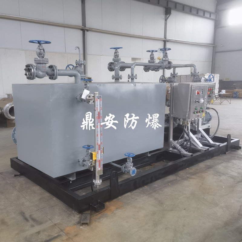 設(shè)備組成 氨水法氨蒸發(fā)器(DYBH-S)由 1、本體 2、噴嘴 3、防爆電加熱器 4、氣氨分離器 5,其他相關(guān)配件(閥門、溫度傳感器,氣動調(diào)節(jié)閥、溫度開關(guān)等)o6,DJK溫度控制柜,輔助設(shè)備等組成。容器上配有熱媒液位就地顯示,熱媒溫度遠傳等相關(guān)信號采集點。